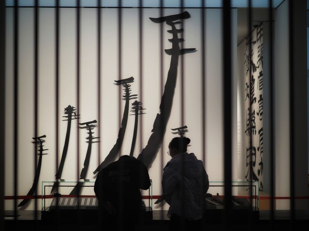 3月10日,游客在甘肅簡牘博物館觀看展品。新華社記者趙宇攝