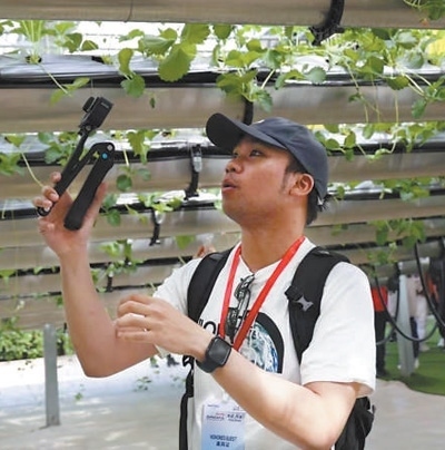 聞名在河南商丘市夏邑縣太平鎮(zhèn)參觀龍港灣空中草莓體驗館的智慧農(nóng)業(yè)設施并錄制視頻。受訪者供圖