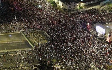 當(dāng)?shù)貢r間6日,以色列特拉維夫爆發(fā)抗議活動,呼吁現(xiàn)任政府下臺且盡快采取措施帶回人質(zhì) 圖源:《以色列時報(bào)》
