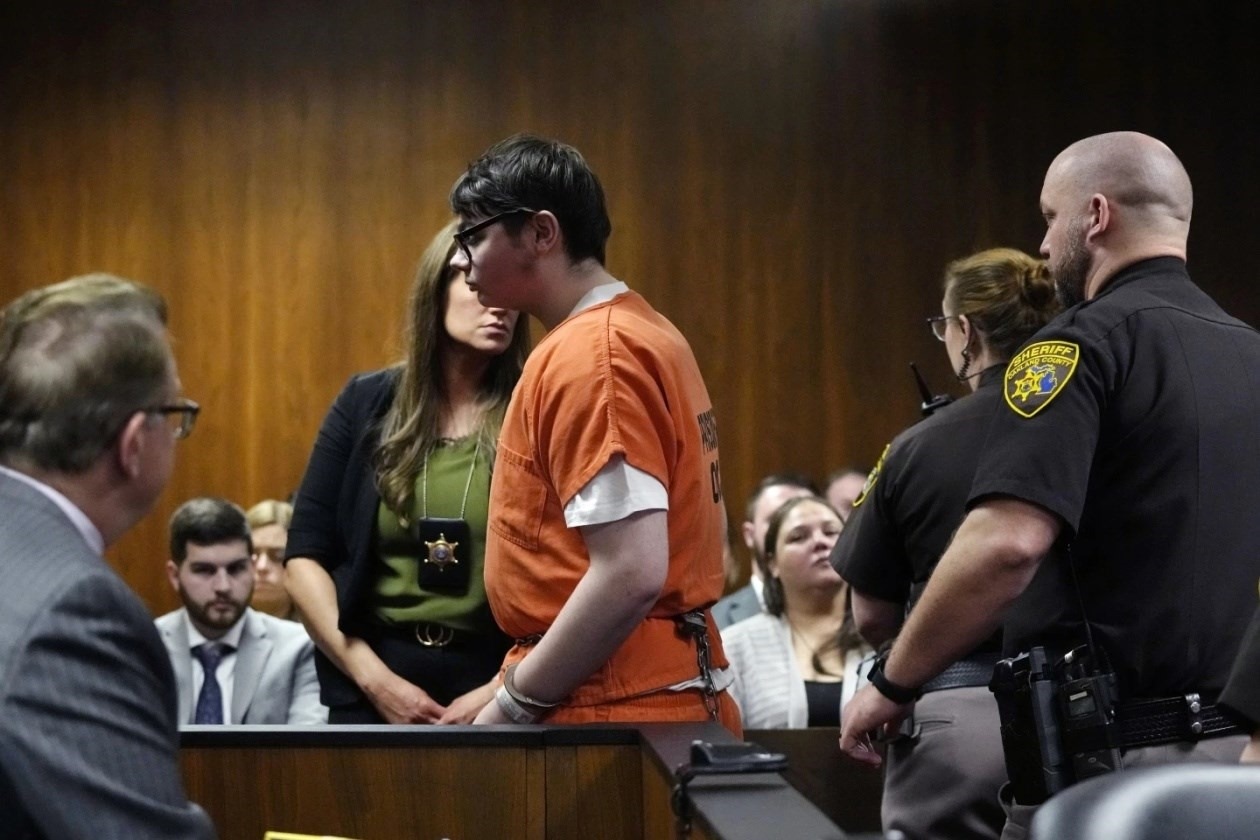 當(dāng)天,在密歇根州奧克蘭縣一法庭上,幾名受害者家長發(fā)表陳述后,法官對被告人珍妮弗·克倫布利和詹姆斯·克倫布利宣布判刑。一名受害者母親哭訴:“殺死我女兒的兇手不只是你兒子,你們兩人也是?!?/p>