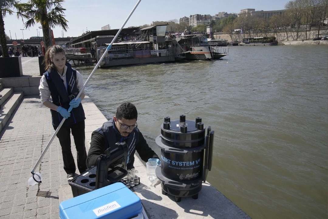 當(dāng)?shù)貢r(shí)間2023年4月5日,法國(guó)巴黎,高級(jí)技術(shù)人員正在對(duì)塞納河水樣進(jìn)行分析。