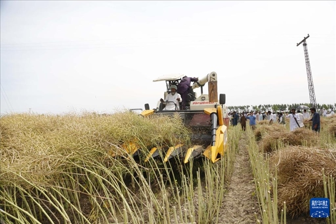 這是由武漢慶發(fā)禾盛農(nóng)業(yè)發(fā)展有限公司與巴基斯坦農(nóng)業(yè)企業(yè)EVYOL集團(tuán)在當(dāng)?shù)嘏e辦的油菜籽收割設(shè)備技術(shù)推介活動,吸引了當(dāng)?shù)財?shù)百家農(nóng)戶代表參與。2022年,中巴兩家企業(yè)簽署了在巴開發(fā)油菜品種和食用油產(chǎn)業(yè)鏈的諒解備忘錄,推廣種植通過中國先進(jìn)農(nóng)業(yè)技術(shù)選育出的新一代甘藍(lán)型雜交雙低油菜品種。