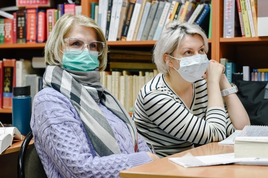 2021年3月4日,學(xué)生在位于莫斯科的俄羅斯國(guó)立人文大學(xué)孔子學(xué)院課堂上學(xué)習(xí)漢語(yǔ)。新華社發(fā)(葉甫蓋尼·西尼岑攝)