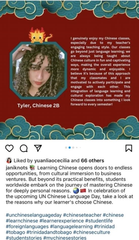 另外,在互聯(lián)網(wǎng)的浸潤下成長起來的海外“Z世代”也對中文和中國文化熱情洋溢。阿富汗的中文學習者Sediqi Khawaja Abdul Nasir認為,“中文的學習不僅僅是掌握詞匯和語法,更是理解一個國家和一個民族的心靈。”特立尼達和多巴哥的Janine Lutchman從中文學習者成長為本土教師,分享著她感染學生學習中文的點滴故事。此外,緬甸籍學生黃俊杰Thet Paing Phyo、土耳其籍中文學習者王愛英Ayperi ztürk和加納籍中文學習者王富健Richmond Ayawuli、格林納達的學生們等世界各地的青年,都在活動中為大家?guī)砬f萬動人的“中文故事”。