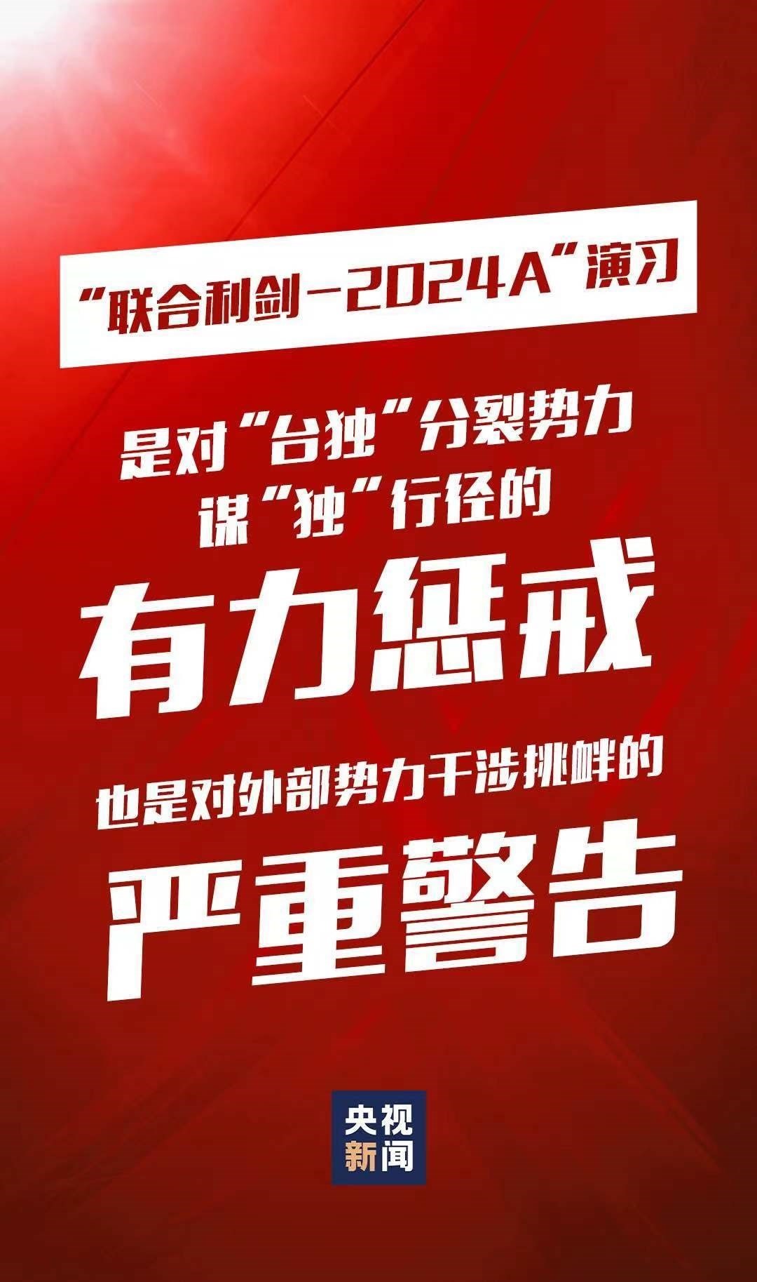 5月23日至24日,中國(guó)人民解放軍東部戰(zhàn)區(qū)組織戰(zhàn)區(qū)陸軍、海軍、空軍、火箭軍等兵力,位臺(tái)島周邊開(kāi)展“聯(lián)合利劍-2024A”演習(xí),重點(diǎn)演練聯(lián)合??諔?zhàn)備警巡、聯(lián)合奪取戰(zhàn)場(chǎng)綜合控制權(quán)、聯(lián)合精打要害目標(biāo)等科目,艦機(jī)抵近臺(tái)島周邊戰(zhàn)巡,島鏈內(nèi)外一體聯(lián)動(dòng),檢驗(yàn)戰(zhàn)區(qū)部隊(duì)聯(lián)合作戰(zhàn)實(shí)戰(zhàn)能力。這是中國(guó)維護(hù)國(guó)家主權(quán)和領(lǐng)土完整的正義之舉,也是對(duì)“臺(tái)獨(dú)”分裂勢(shì)力謀“獨(dú)”行徑的有力懲戒,對(duì)外部勢(shì)力干涉挑釁的嚴(yán)重警告。