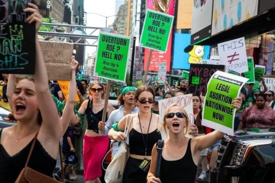 2022年7月4日,墮胎權(quán)支持者在美國紐約舉行示威游行。美國聯(lián)邦最高法院6月24日推翻近半個(gè)世紀(jì)前在聯(lián)邦層面確立墮胎權(quán)的判例“羅訴韋德案”,取消對女性墮胎權(quán)的憲法保護(hù),引發(fā)廣泛爭議。新華社發(fā)(郭克攝)