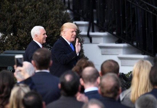 2017年12月20日,在美國(guó)華盛頓白宮,時(shí)任美國(guó)總統(tǒng)特朗普(右)和副總統(tǒng)彭斯準(zhǔn)備就國(guó)會(huì)通過(guò)稅改法案發(fā)表講話。新華社記者殷博古攝