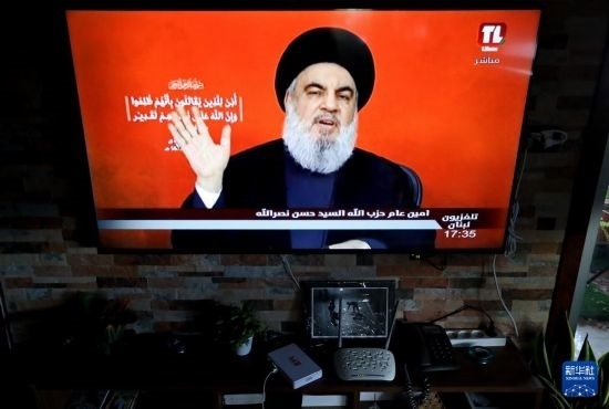 這是9月19日在黎巴嫩貝魯特拍攝的真主黨領(lǐng)導(dǎo)人納斯魯拉發(fā)表講話(huà)的電視畫(huà)面。新華社發(fā)(比拉爾·賈維希攝)