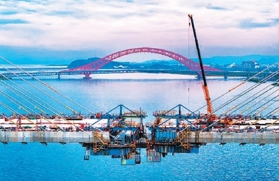 近日,浙江寧波舟山港六橫公路大橋一期項(xiàng)目梅山水道橋即將合龍。該大橋建成后,可實(shí)現(xiàn)六橫島、佛渡島、梅山島三島港區(qū)、產(chǎn)業(yè)聯(lián)動(dòng)發(fā)展,推動(dòng)甬舟一體化駛?cè)搿翱旌降馈薄:鷮W(xué)軍攝(人民視覺)