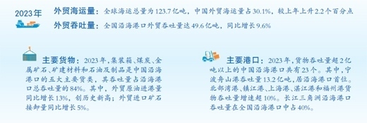 ——貨物吞吐量超2億噸以上的中國沿海港口共有23個(gè),沿海港口航道已實(shí)現(xiàn)“一圖覆蓋”,沿海水上安全通信“一網(wǎng)貫通”