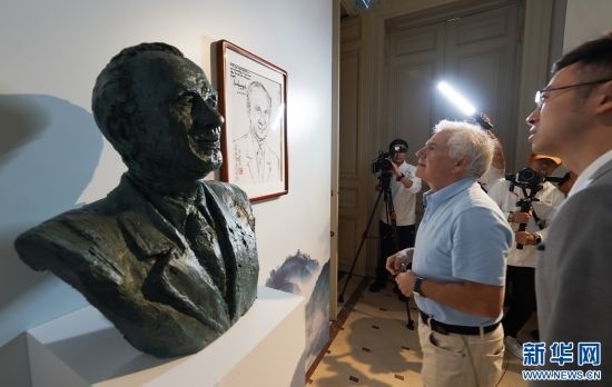 國(guó)際奧委會(huì)副主席、薩馬蘭奇體育發(fā)展基金會(huì)創(chuàng)始人胡安·安東尼奧·薩馬蘭奇到訪“中國(guó)之家”,參觀了袁熙坤的創(chuàng)作。