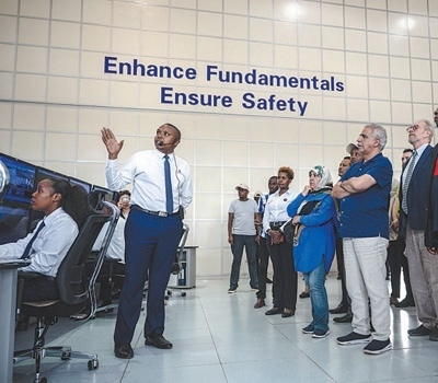 2023年10月6日,多國(guó)駐肯使節(jié)在肯尼亞內(nèi)羅畢的蒙內(nèi)鐵路內(nèi)羅畢站調(diào)度中心參觀。新華社記者 王冠森攝