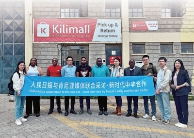 7月25日,在肯尼亞馬查科斯郡,中肯媒體記者走進(jìn)電商平臺(tái)Kilimall非洲海外倉采訪倉儲(chǔ)物流及運(yùn)營(yíng)情況。本報(bào)記者 高 石攝