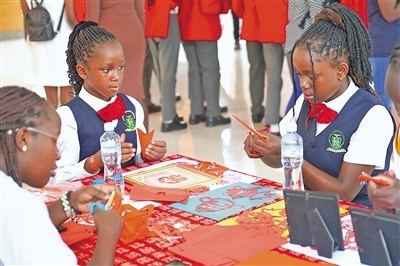 今年2月,在肯尼亞內(nèi)羅畢大學(xué)孔子學(xué)院舉辦的2024“歡樂(lè)春節(jié)之龍騰鼓躍鬧新春”活動(dòng)上,當(dāng)?shù)貙W(xué)生體驗(yàn)中國(guó)剪紙。本報(bào)記者 黃煒鑫攝