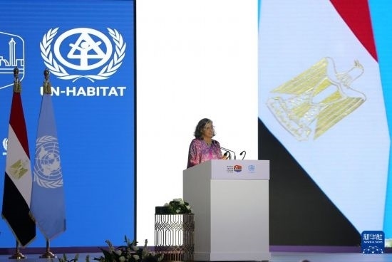 11月4日,在埃及首都開(kāi)羅,聯(lián)合國(guó)人居署執(zhí)行主任阿納克勞迪婭·羅斯巴赫在第12屆世界城市論壇開(kāi)幕式上講話。新華社記者 王東震 攝