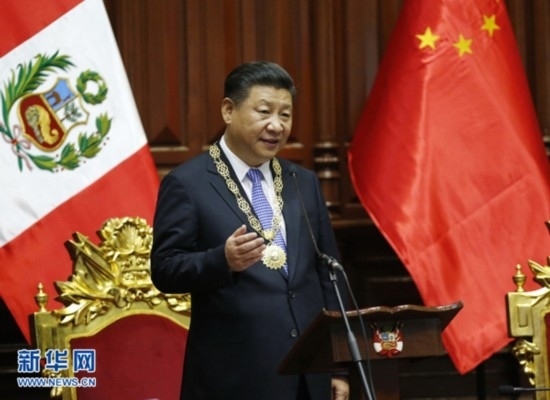 2016年11月21日,國家主席習近平在秘魯國會發(fā)表題為《同舟共濟、揚帆遠航,共創(chuàng)中拉關(guān)系美好未來》的重要演講。新華社記者 鞠 鵬攝