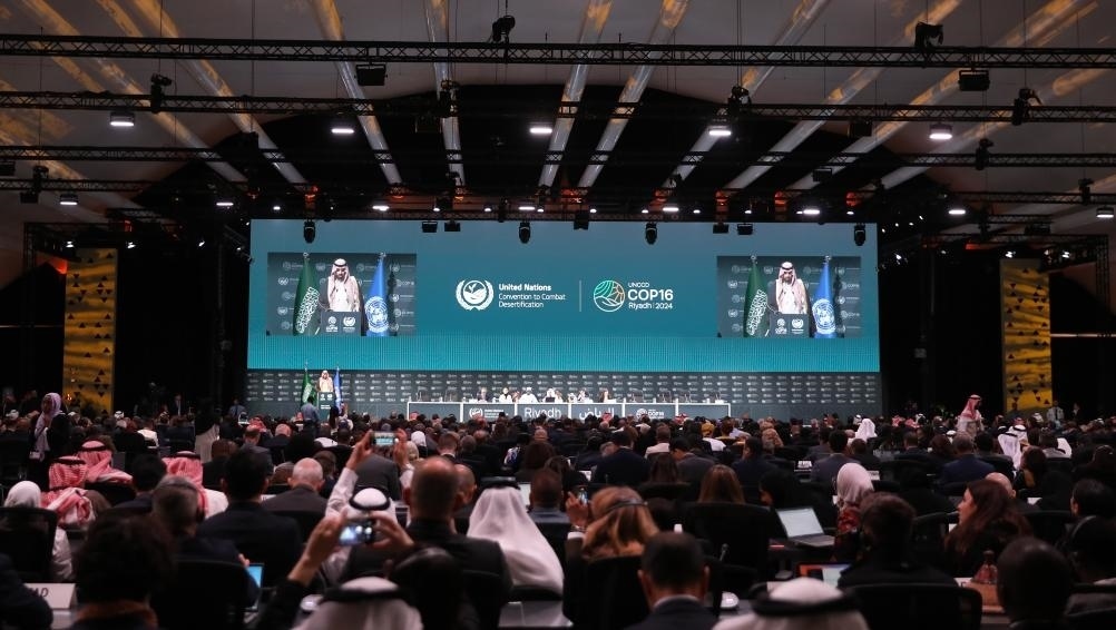 12月2日,與會(huì)者在沙特阿拉伯首都利雅得出席《聯(lián)合國防治荒漠化公約》第十六次締約方大會(huì)開幕式。新華社記者王東震攝