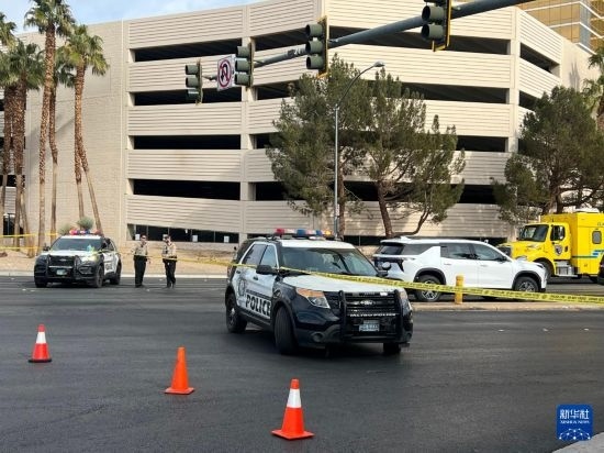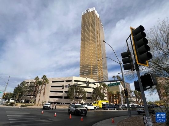 1月1日,在美國內(nèi)華達(dá)州拉斯維加斯,警方封鎖發(fā)生電動(dòng)汽車爆炸事件的特朗普酒店門前區(qū)域。新華社記者 譚晶晶 攝