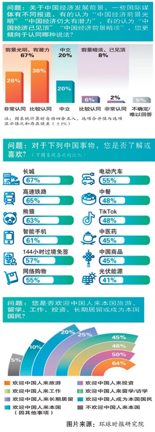 近日,環(huán)球時(shí)報(bào)社發(fā)布中國國際形象全球調(diào)查報(bào)告(以下簡稱“報(bào)告”)。2024年8月至11月,中國國際形象全球調(diào)查面向46個(gè)國家、5.1萬名民眾進(jìn)行問卷調(diào)查,這也是新中國成立以來,中國開展的規(guī)模最大、樣本量最多、問卷設(shè)計(jì)最全面深入的全球民意調(diào)查。問卷深入調(diào)查國外民眾如何感受中國變化、怎樣看待中國發(fā)展、如何認(rèn)知中國形象。報(bào)告顯示,各國受訪民眾認(rèn)為中國發(fā)展前景光明,近八成國外受訪民眾對(duì)中國發(fā)展前景有信心。