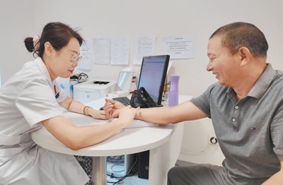 在柬埔寨考斯瑪中柬友誼醫(yī)院中醫(yī)診室,中國醫(yī)生為柬埔寨患者診斷病情。