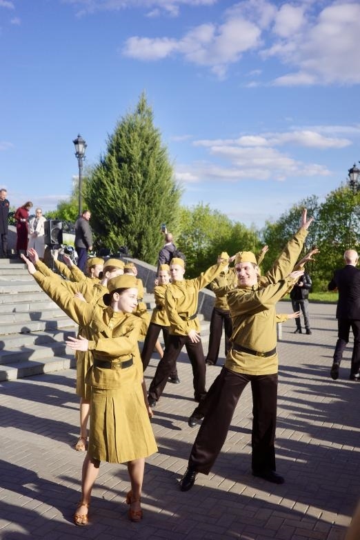莫斯科勝利廣場,是1995年為了紀念反法西斯戰(zhàn)爭勝利50周年而建成。當(dāng)?shù)貢r間5月6日,勝利廣場上,當(dāng)?shù)啬贻p人穿上二戰(zhàn)時蘇聯(lián)軍隊的制服,在音樂聲中翩翩起舞,吸引了很多人駐足。劉少華 攝