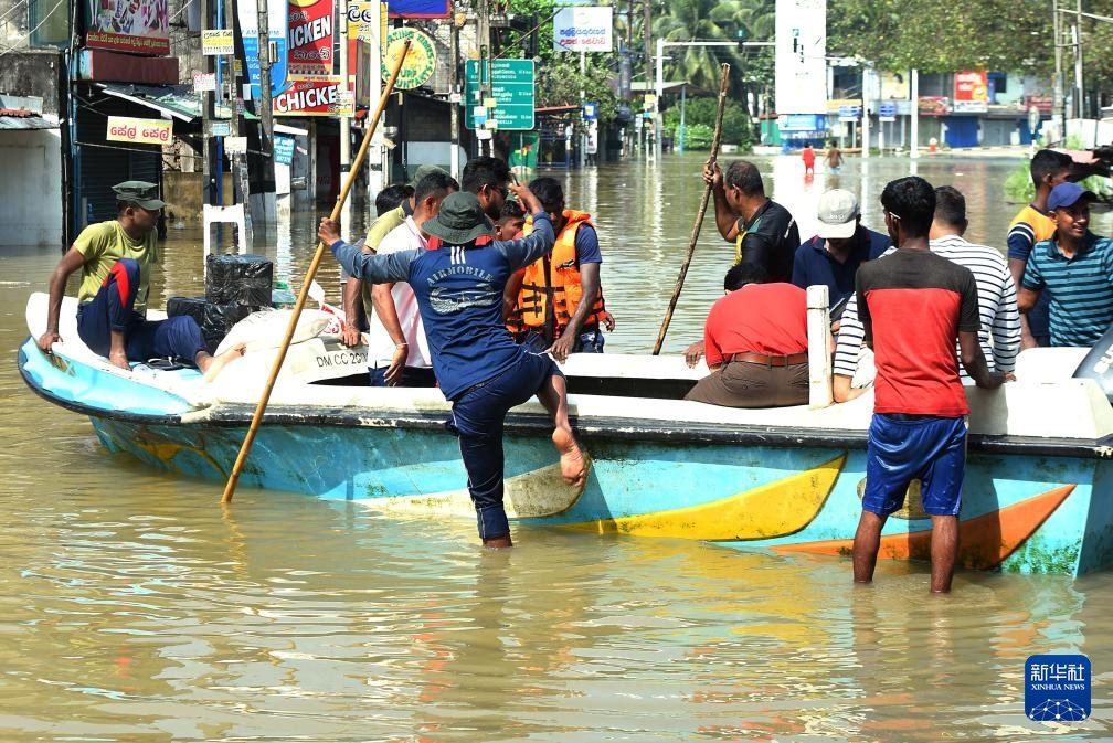 12月1日,在斯里蘭卡首都科倫坡郊區(qū),救援人員將受洪澇影響的民眾轉(zhuǎn)移至安全地點。新華社發(fā)(加揚·薩米拉攝)