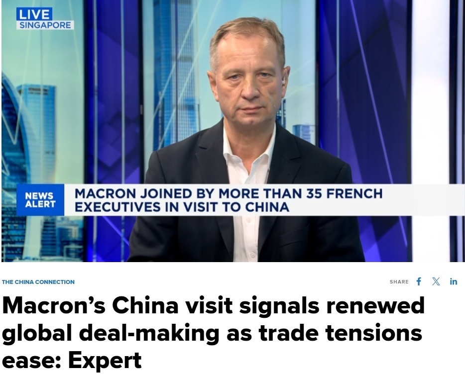 新加坡國(guó)立大學(xué)東亞研究所所長(zhǎng)阿爾弗雷德?席睿德在接受采訪時(shí)認(rèn)為,馬克龍此次出訪不僅有望收獲重要的商業(yè)成果,更將在歐洲與中國(guó)之間長(zhǎng)期存在的重要貿(mào)易問(wèn)題上推動(dòng)雙方在關(guān)鍵議題尋求突破。