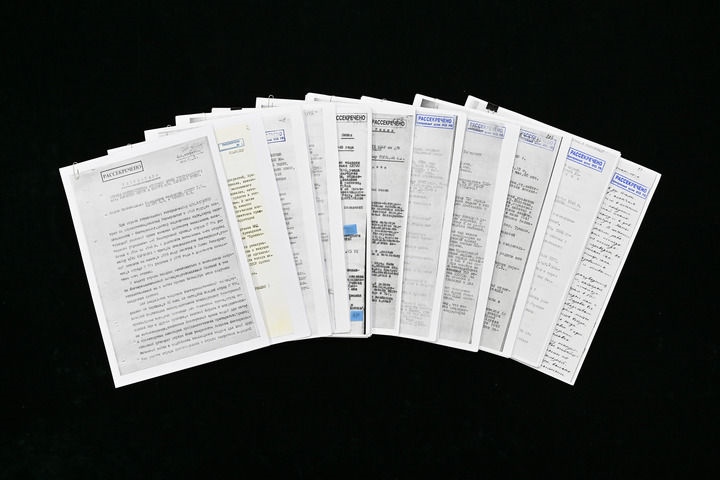 2025年12月13日,第十二個南京大屠殺死難者國家公祭日,中央檔案館公布一批俄羅斯轉交我方的蘇聯(lián)審訊日本731部隊的解密檔案材料。一些偵訊記錄系首次公開,受審戰(zhàn)犯對其違反國際公約、準備和實施細菌戰(zhàn)的罪行供認不諱。這是解密的檔案。新華社記者 李鑫 攝