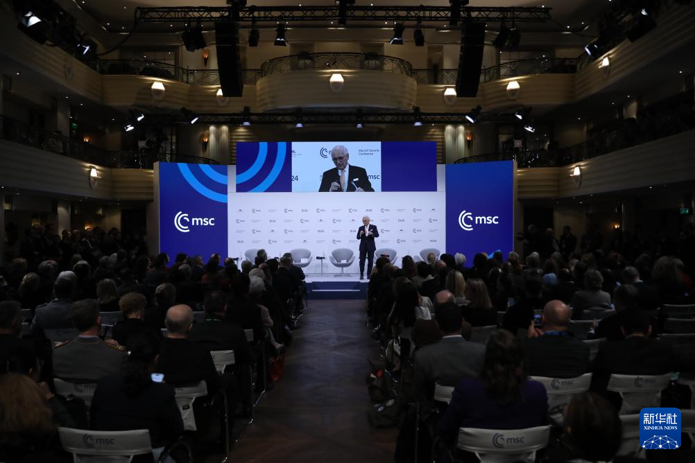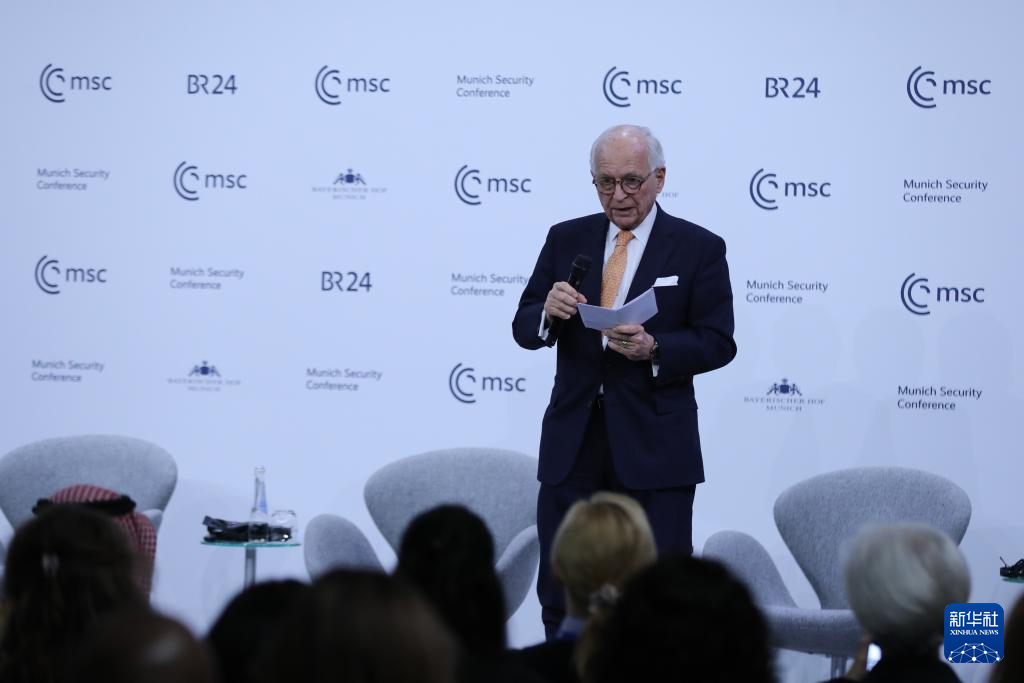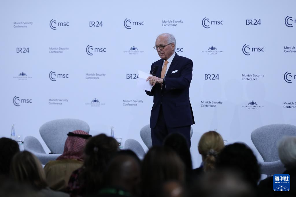 2月15日,在德國慕尼黑,慕安會(huì)主席沃爾夫?qū)ひ辽旮駹栐陂]幕式上致辭。新華社記者 杜哲宇 攝