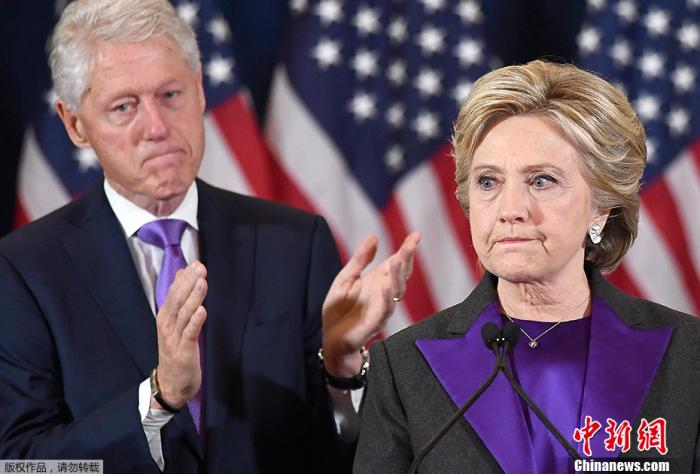 資料圖:美國(guó)前國(guó)務(wù)卿希拉里·克林頓及其丈夫、美國(guó)前總統(tǒng)比爾·克林頓。