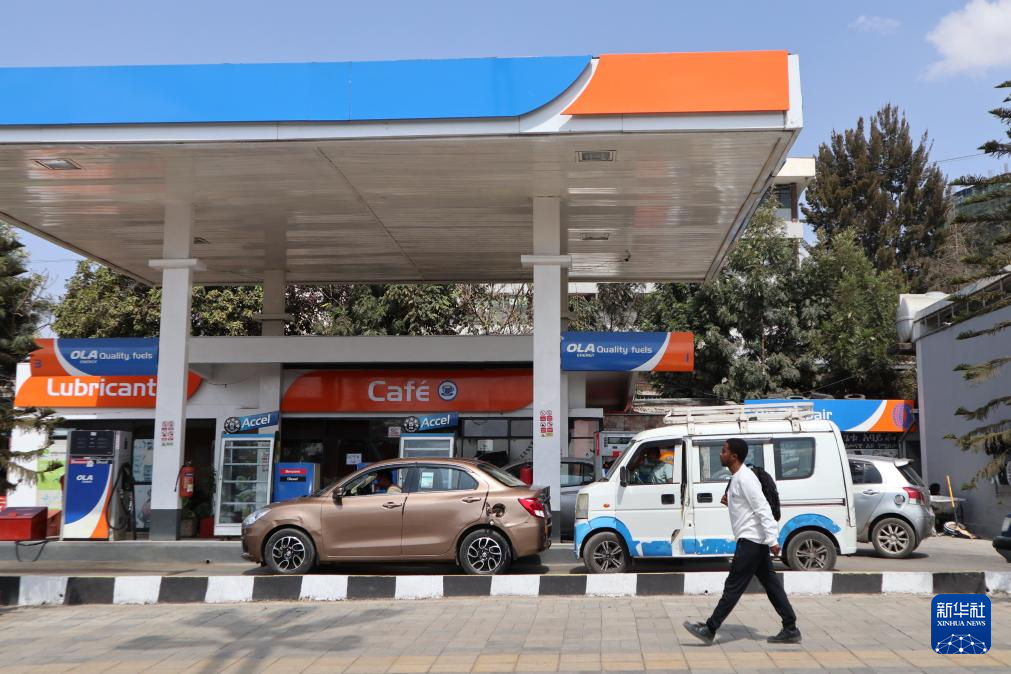 3月17日,在埃塞俄比亞首都亞的斯亞貝巴,行人走過一個加油站。新華社記者 劉方強 攝