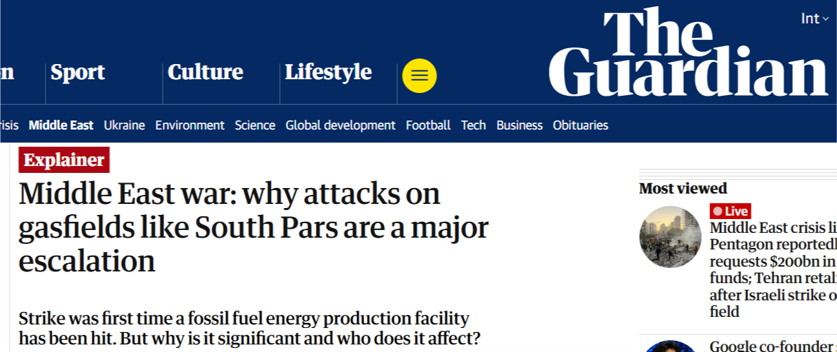 在以色列空軍當(dāng)?shù)貢r(shí)間3月18日襲擊了位于伊朗南部布什爾市的伊朗“主要天然氣設(shè)施”后,19日,伊朗方面表示已發(fā)動(dòng)“真實(shí)承諾-4”行動(dòng)第63波攻勢,“焚毀”與美國相關(guān)的石油設(shè)施作為報(bào)復(fù)。相關(guān)聲明稱,伊朗同美國和以色列的戰(zhàn)爭已進(jìn)入“新階段”。多家外媒指出,這是美以發(fā)動(dòng)對(duì)伊軍事打擊以來,首次襲擊伊朗在海灣的能源生產(chǎn)設(shè)施,標(biāo)志著戰(zhàn)爭的“重大升級(jí)”。