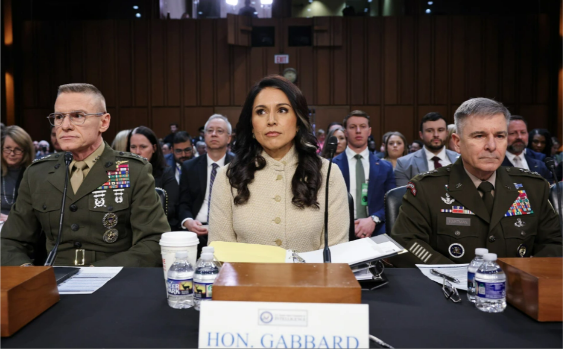 加巴德3月18日出席國會(huì)參議院情報(bào)特別委員會(huì)就美國所面臨“全球安全威脅”舉行的年度聽證會(huì) 圖源:美國全國廣播公司(NBC)報(bào)道截圖