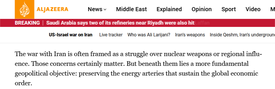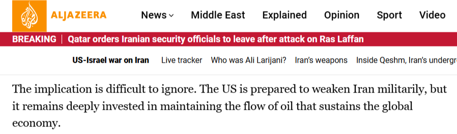 半島電視臺(tái)的報(bào)道稱,最近的事態(tài)發(fā)展表明,另一種更深層次、美國政府由來已久的“石油邏輯”正在發(fā)揮作用。美國的根本目的是控制資源,保障石油的流動(dòng)性,這是全球資本主義經(jīng)濟(jì)的命脈。