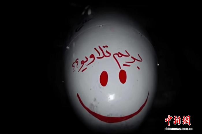 伊朗法爾斯通訊社發(fā)布的圖片顯示,伊朗伊斯蘭革命衛(wèi)隊向以色列特拉維夫發(fā)射的“目擊者-136”無人機(jī),彈頭上用波斯語寫著“我們?nèi)ヌ乩S夫吧”,并畫了個笑臉。