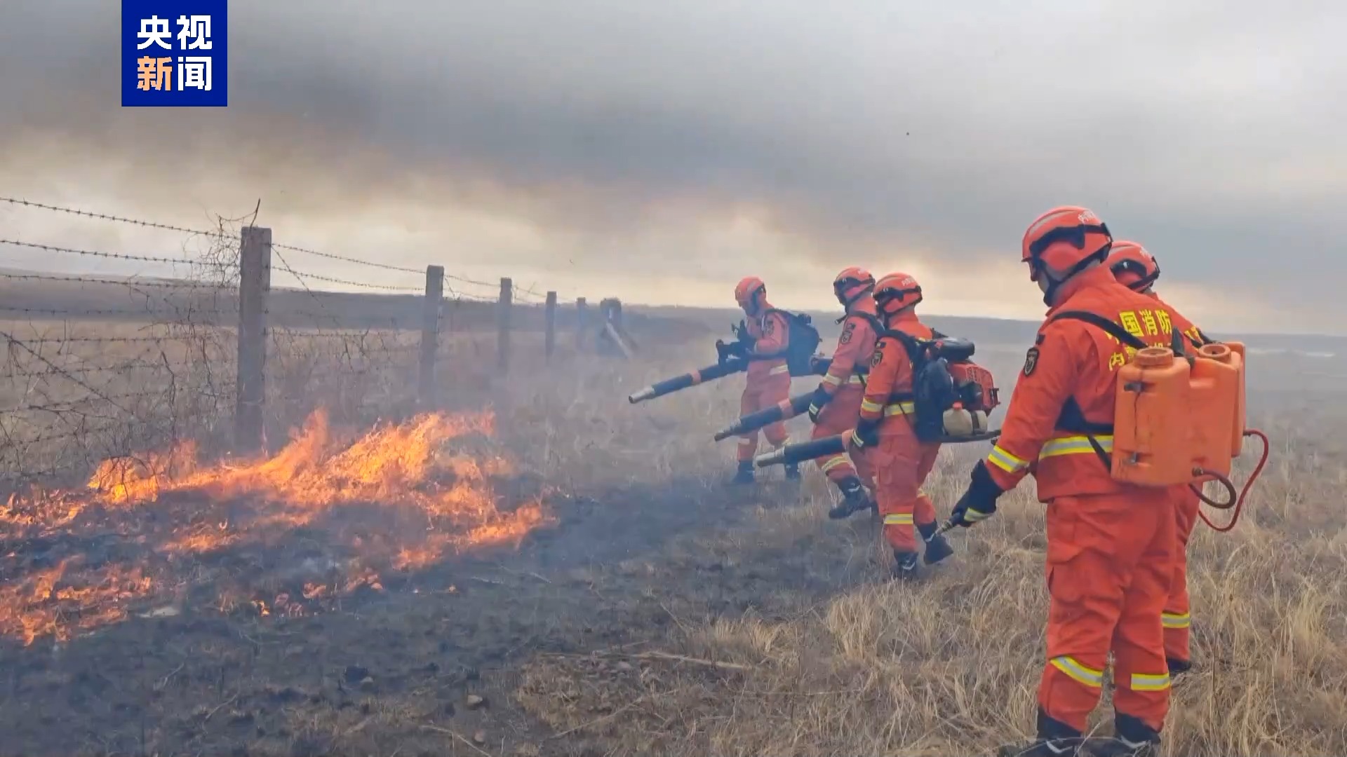 12時許,錫林郭勒消防救援機(jī)動支隊指戰(zhàn)員在1169號界樁附近,沿邊境隔離網(wǎng)有序?qū)嵤斑叴蜻吳濉睉?zhàn)術(shù),全力阻截火勢向我方縱深蔓延;同時,在1177號至1178號界樁區(qū)域部署前置力量,采取“以巡待撲”策略,嚴(yán)密監(jiān)控火情動態(tài)。