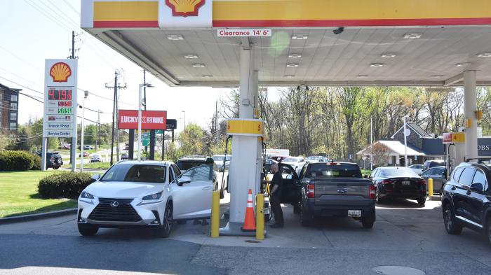 圖為美國(guó)民眾在馬里蘭州羅克維爾一處加油站加油。 中新社記者 沙晗汀 攝