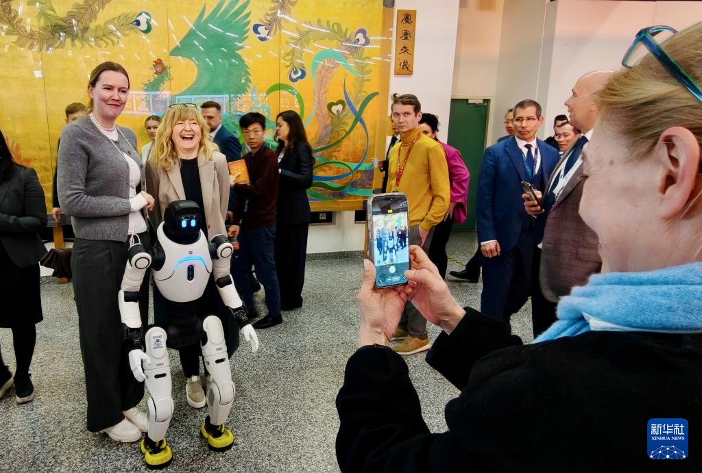 4月13日,在奧地利維也納國際中心,人們在以“太和充滿——在維也納聯(lián)合國遇見故宮”為主題的2026年維也納聯(lián)合國中文日系列活動上與機(jī)器人合影。 新華社發(fā)(王宙攝)