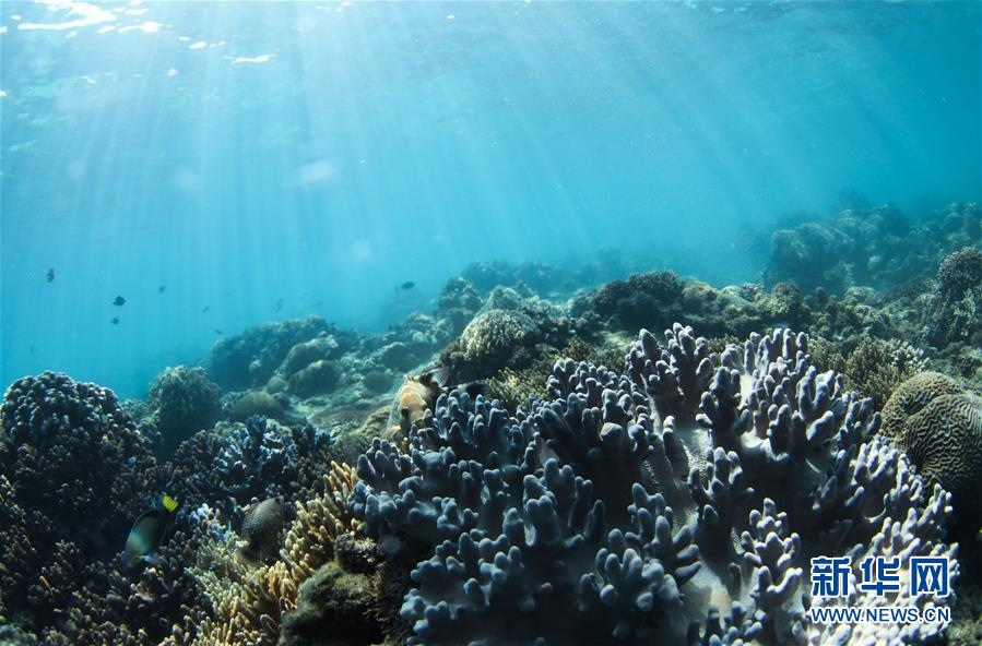 這是海南三亞蜈支洲島海域海洋牧場內(nèi)生長的珊瑚(4月29日攝)。新華社記者楊冠宇攝