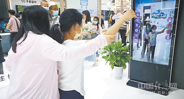 在2020服貿會5G通信服務專題展區(qū),觀眾正體驗“AR試衣鏡”。經(jīng)濟日報-中國經(jīng)濟網(wǎng)記者崔國強攝
