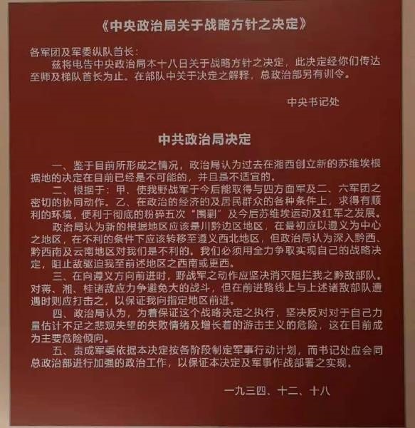 “鑒于目前所形成之情況,政治局認(rèn)為過去在湘西創(chuàng)立新的蘇維埃根據(jù)地的決定在目前已經(jīng)是不可能的,并且是不適宜的”。