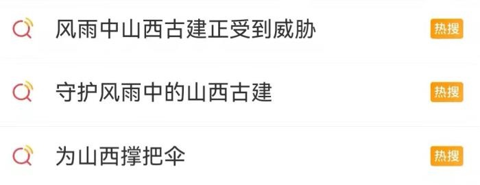 近日,“風雨中山西古建正受到威脅”“守護風雨中的山西古建”“為山西撐把傘”等話題登上微博熱搜。