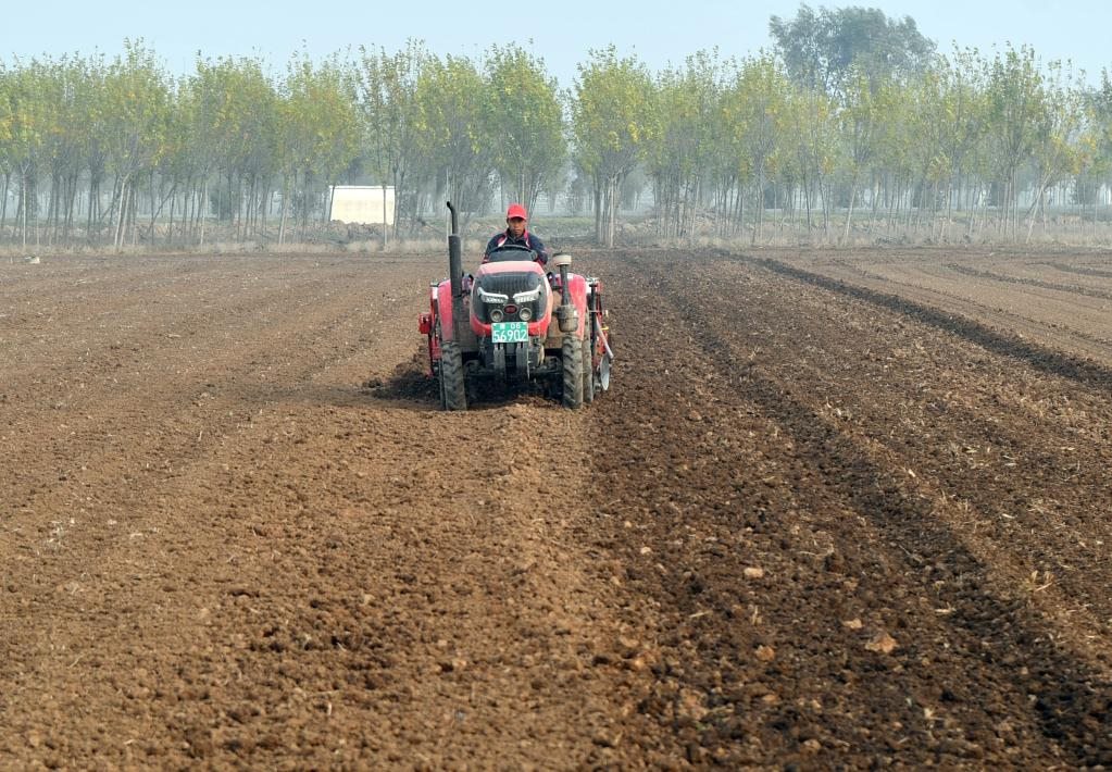 11月3日晚上,河南浚縣衛(wèi)溪街道西長(zhǎng)村的田地里,農(nóng)民在耕地。(新華社記者李嘉南 攝)