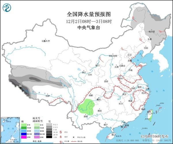今天(12月1日),東北降雪有所減弱,但黑龍江等地部分地區(qū)仍有降雪,目前這一帶積雪深度較深,需加強(qiáng)防范對道路交通的不利影響,同時西藏西部和南部將有較強(qiáng)降雪。氣溫方面,今天北方大部氣溫將開始反彈,南方氣溫仍將持續(xù)走低,長江中下游多地或創(chuàng)今年下半年以來氣溫新低,需注意及時添衣保暖。