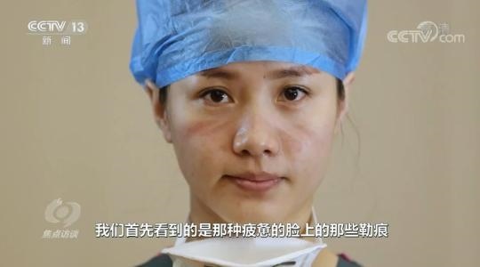 中國文聯(lián)第十一次全國代表大會代表、中國攝影家協(xié)會主席李舸說:“摘下口罩那一下,我們首先看到的是疲憊的臉上的那些勒痕,甚至有很多都是破的傷口,但是他們用很簡單的方法處理,那種堅毅的眼神讓我們感觸特別深?!?/p>