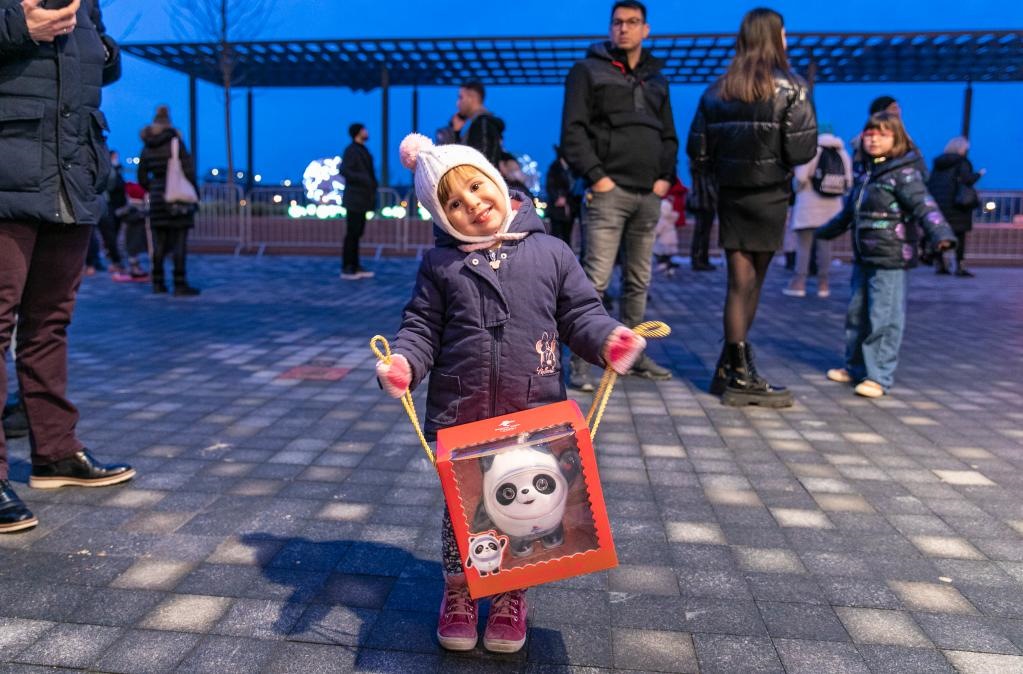 1月31日,在塞爾維亞貝爾格萊德舉行的中國燈展上,一名兒童手捧北京冬奧會吉祥物“冰墩墩”。新華社發(fā)(王韡攝)