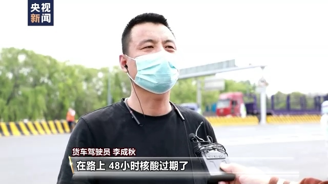 貨車駕駛員 李成秋:我是從遼寧過來的,在路上48小時核酸過期了,正好一下高速,也趕上這邊有做核酸的,挺方便我們貨車司機(jī)的。