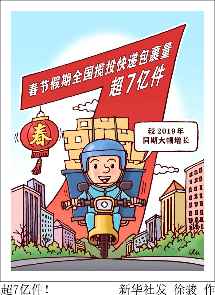 國家郵政局表示,今年春節(jié)期間,特色產(chǎn)品和節(jié)慶寄遞需求旺盛,農(nóng)產(chǎn)品繼續(xù)保持增長態(tài)勢。郵政管理部門始終堅(jiān)持“保供應(yīng)、保暢通、保穩(wěn)定、保安全”,全力保障春節(jié)期間醫(yī)療物資寄遞、行業(yè)安全穩(wěn)定運(yùn)行和寄遞服務(wù)暢通有序,為人民群眾度過幸福安康歡樂祥和的春節(jié)提供了良好的寄遞服務(wù)保障。