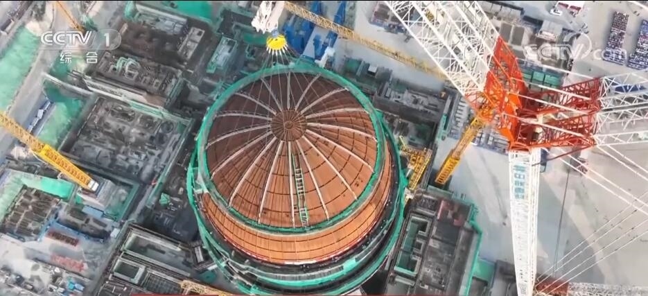 海南昌江:“華龍一號”核電3號機(jī)組內(nèi)穹頂?shù)跹b