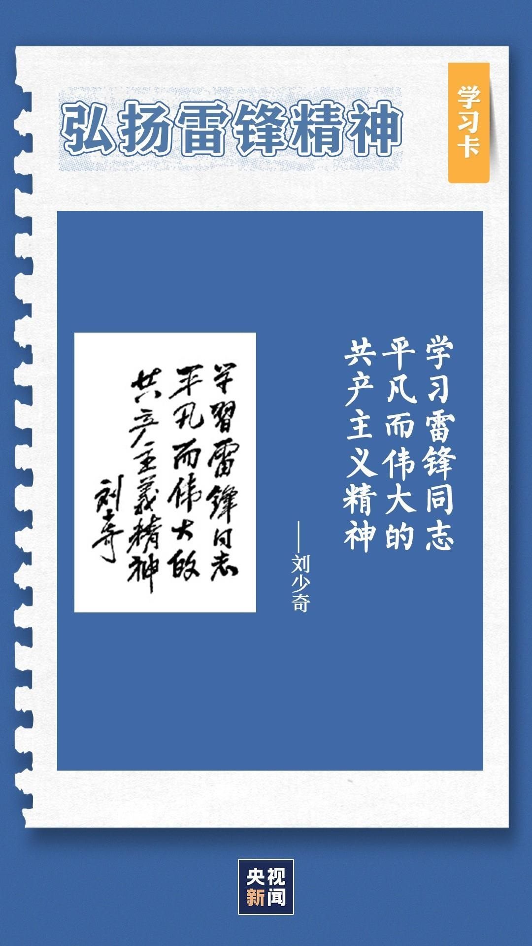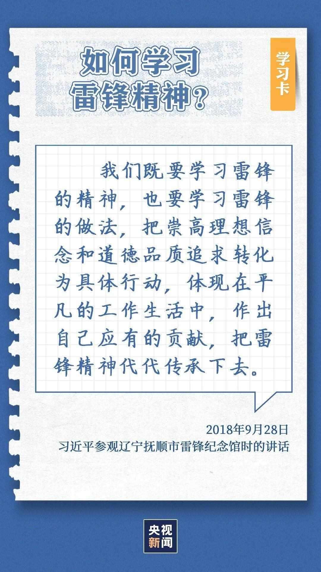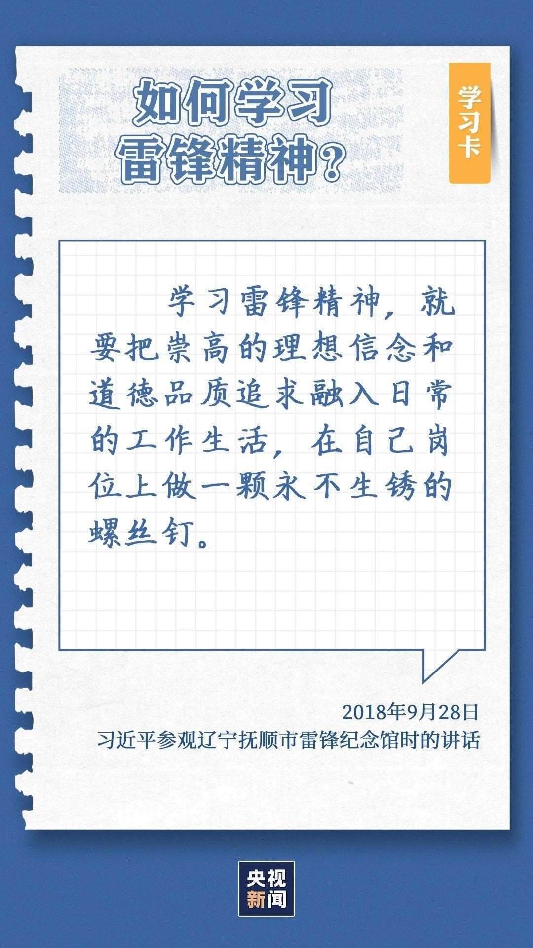 中共中央總書記、國(guó)家主席、中央軍委主席習(xí)近平近日作出重要指示指出,今年是毛澤東等老一輩革命家為雷鋒同志題詞60周年。60年來,學(xué)雷鋒活動(dòng)在全國(guó)持續(xù)深入開展,雷鋒的名字家喻戶曉,雷鋒的事跡深入人心,雷鋒精神滋養(yǎng)著一代代中華兒女的心靈。實(shí)踐證明,無(wú)論時(shí)代如何變遷,雷鋒精神永不過時(shí)。在新時(shí)代新征程上,如何弘揚(yáng)雷鋒精神?點(diǎn)擊學(xué)習(xí)卡↓